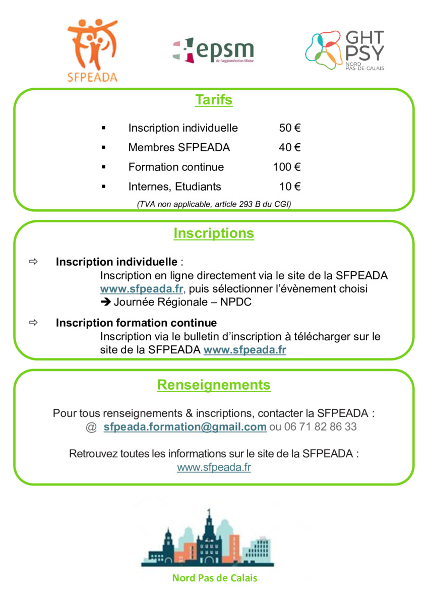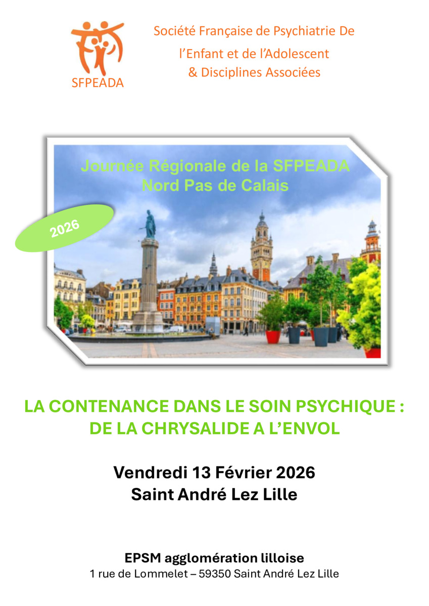 Accueil L'agenda Journée Régionale de la SFPEADA Nord Pas de Calais le Vendredi 13 fév 2026 EPSM Lille Agglomération - Saint André Lez Lille